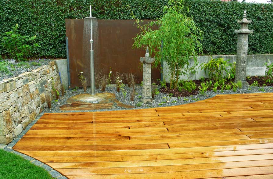 Das Berühren von Holz, das Leben damit, ruft in uns vielfältige Empfindungen wach. Sie sind alt, denn die gemeinsame Geschichte von Holz und Mensch ist lang. In der Tat durchdringt das Holz all unsere Lebensbereiche, ist fein verzweigt wie dichtes Wurzelwerk in unsere Welt, in unser Wesen hineingewachsen. "Die Vollkommenheit Ihres Gartens liegt in der Harmonie weniger Zutaten" (Thomas Gardener) Holz bringt Geborgenheit und Ruhe in Ihren Garten- und Wohnbereichen. Neben Holzbänken, Holzterassen, Holzsichtschutz, steht die Optik für den Wohlfühlfaktor im Vordergrund. Integrierte Bauweise und Konstruktionen, präzises handwerkliches Geschick, sind ein Garant für Stabilität. Nachhaltig und ökologisch in der Herstellung, spürbar natürlich und beständig in der Anendung. Wir planen mit Ihnen hochwertige Holzkonstruktionen und beraten Sie gerne in der Auswahl der Hölzer. Perfekt abgestimmte Unterkonstruktionen und Befestigungsmaterial sind die Voraussetzung für eine langanhaltende Lebensdauer. Unsere verwendeten Hölzer stammen ausnahmslos aus nachvollziehbaren Quellen und aus FSC-zertifizierten Plantagenwäldern zB. einheimische, modifizierte Hölzer oder aus nachhaltiger Waldbewirtschaftung. |